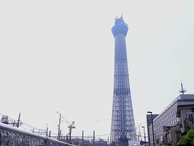 そこから向かったのが、スカイツリー。浅草方面へ徒歩で。おなかがすいて暑かったので、みんな大変だったみたい。地下づくにつれ、徐々にでっかくなってくるのが分かりました。いろいろ撮影スポットがあるようです。東武浅草駅手前では、本当にゆっくりと走るスペーシアが見えました。